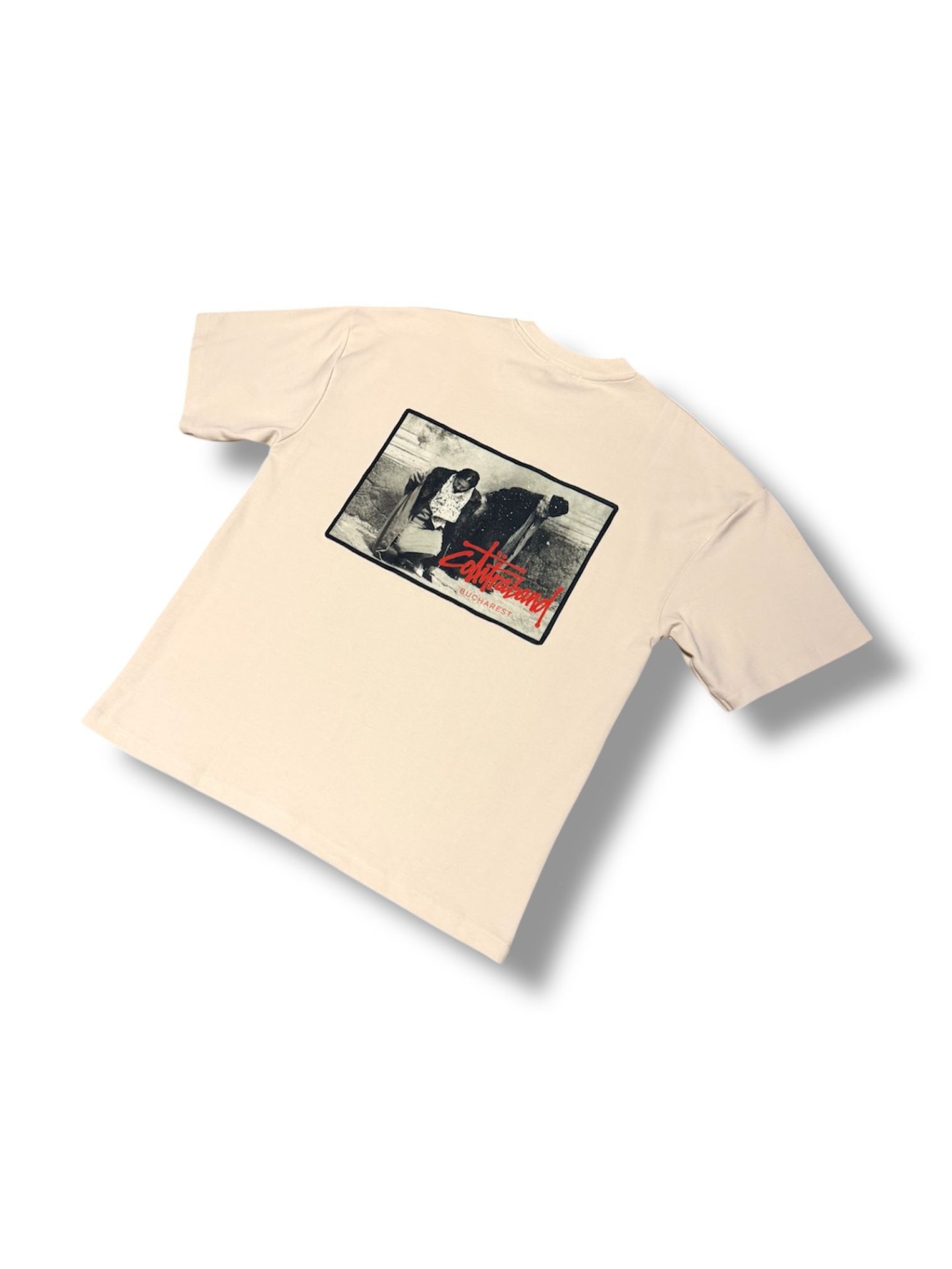 Tricou urban cu influențe grafice inspirate din Revolutian din Bucuresti din 1989, creat pentru un stil simplu, dar cu mesaj. Designul minimalist din față este completat de printul mare de pe spate, care surprinde o scenă urbană reinterpretată într-o estetică streetwear.